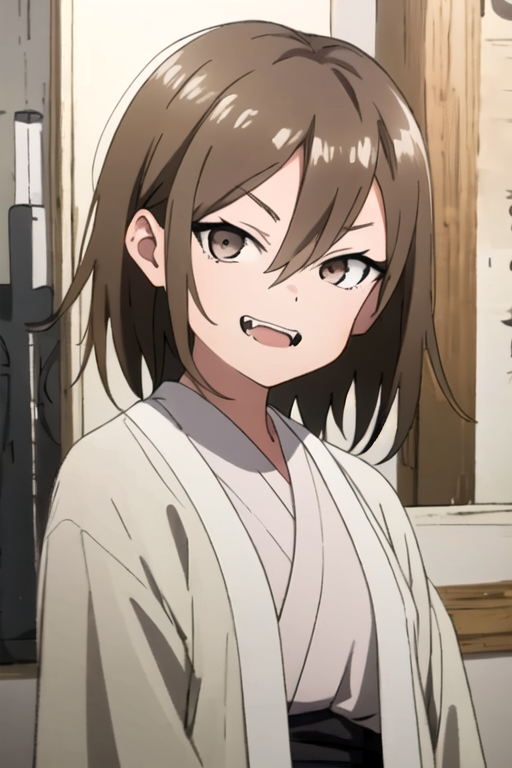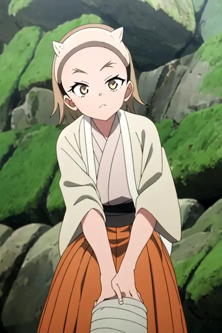KunoichiDokudami, 中长发, 发带, 和服, 橙色裙子