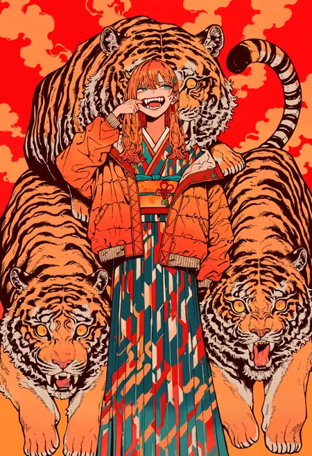 生成动物:使用 “oversized animal” 后接您想生成的动物名称。原风格可渲染三种动物:老虎、狼和龙。其他动物也可生成,风格将应用于其上。