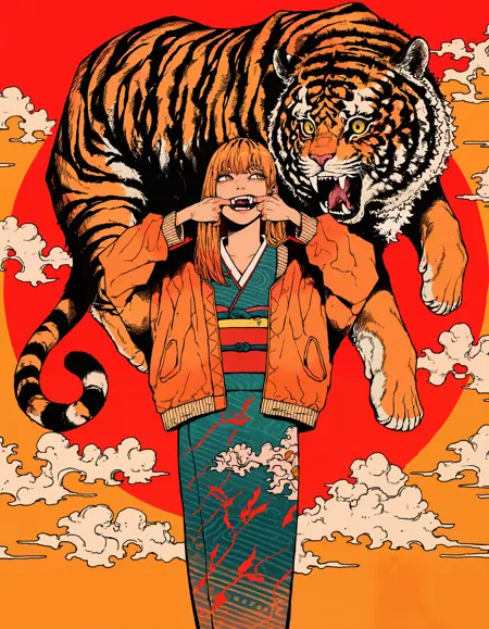 生成动物:使用 “oversized animal” 后接您想生成的动物名称。原风格可渲染三种动物:老虎、狼和龙。其他动物也可生成,风格将应用于其上。