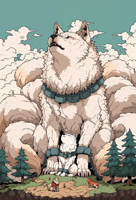 To generate animals: use "oversized animal" followed by which animal you'd like to generate. There are three animals which can be rendered in the original style: tiger, wolf and dragon. Other animals can be generated as well, as the style will be applied to them instead.