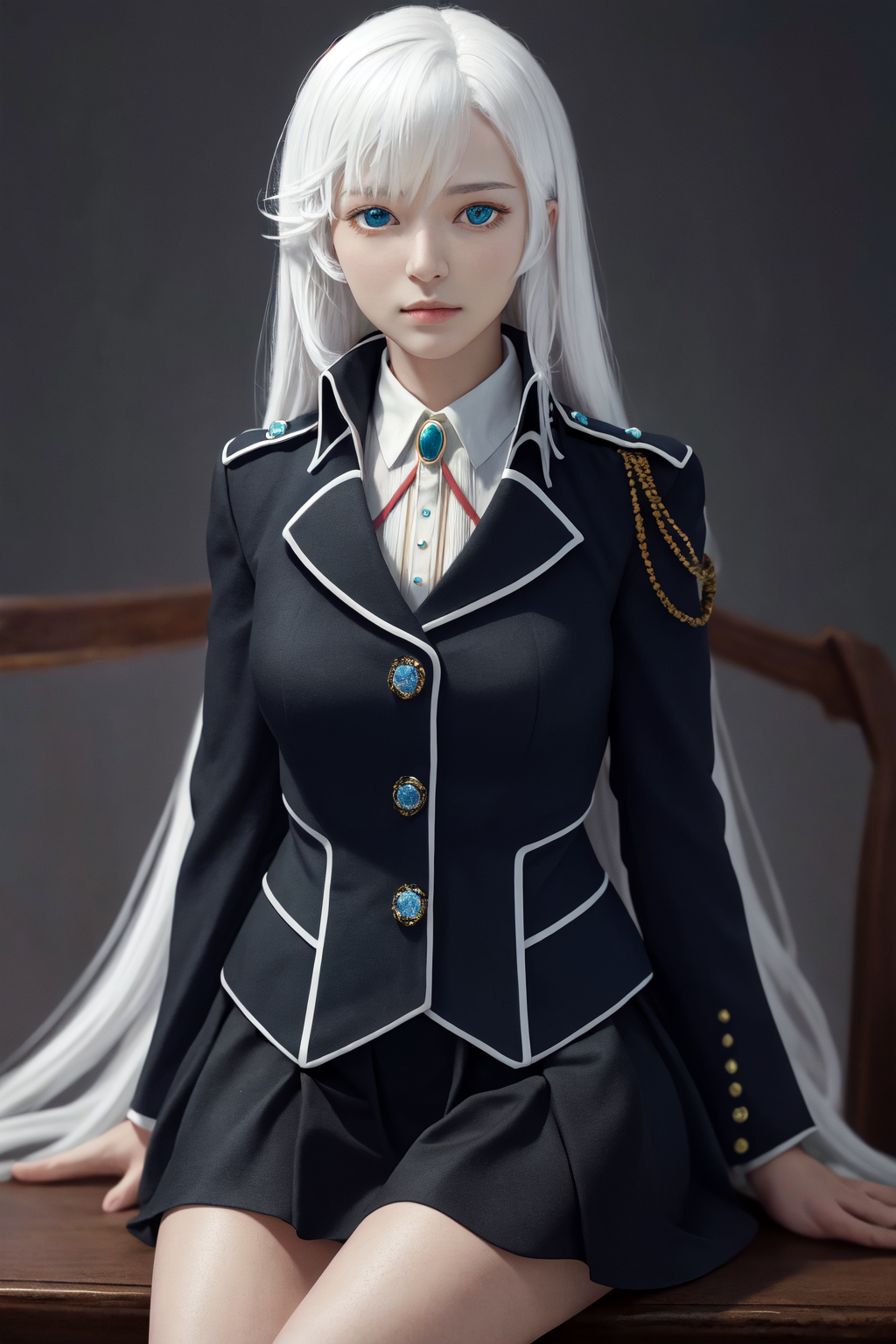 默认服装:军装 白衬衫 黑色短裙 胸针