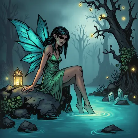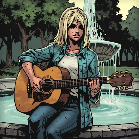 Trigger words (must include in prompt): inked comic illustration in dd artstyle, + dark empty black hollow eyes (for people)