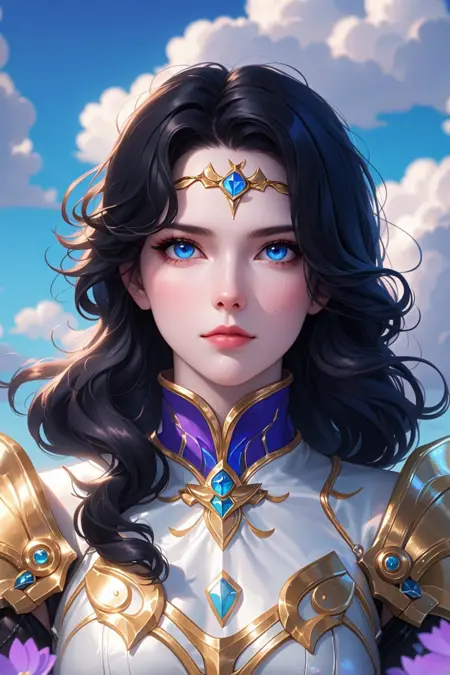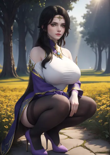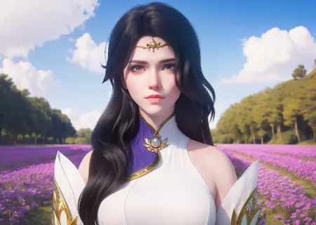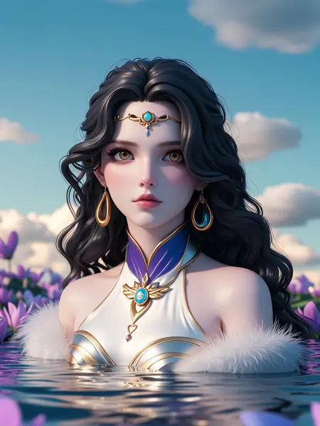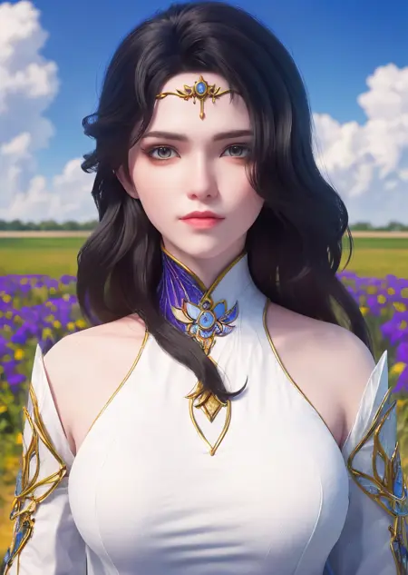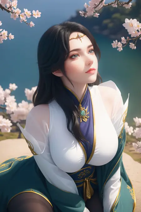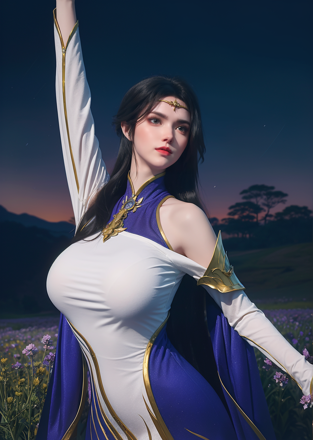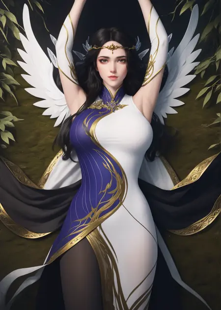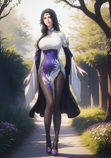 - 의상: detached sleeves, chinese fantasy long dress, white ornate fantasy high heels