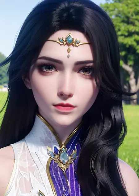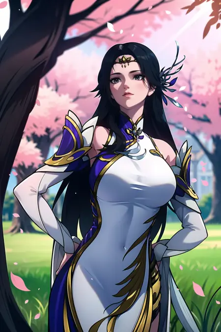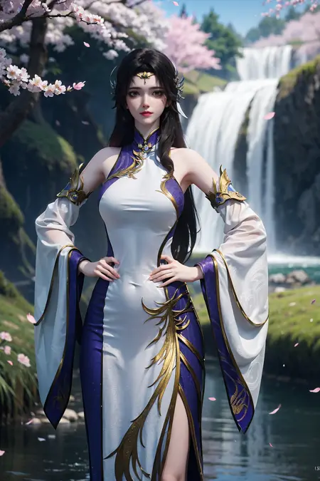 **-Clothing:**detached sleeves, chinese fantasy long dress, white ornate fantasy high heels