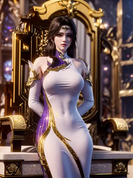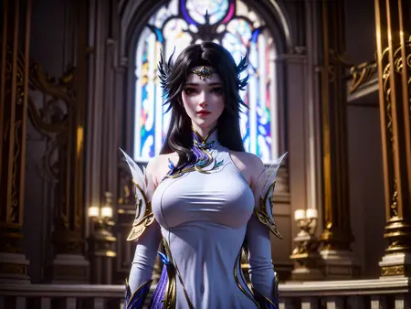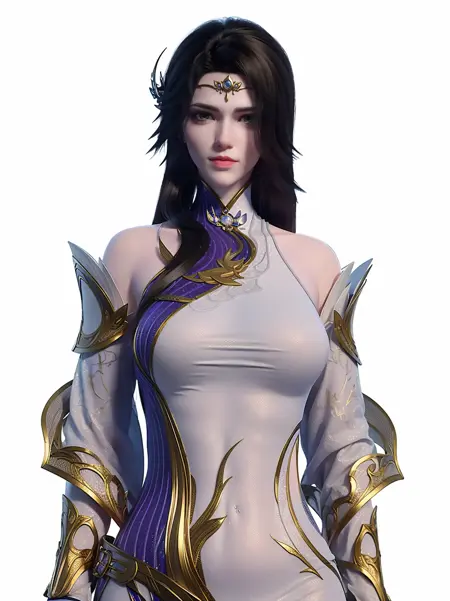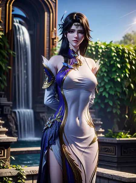 - 服装: detached sleeves, chinese fantasy long dress, white ornate fantasy high heels