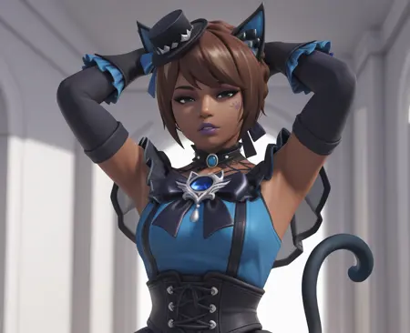 | 학습된 단어 | ill1, black eyes, short hair, brown hair, crown braid, bangs, purple lips, facial mark,복사됨! gloves, mini top hat, dress, tail, elbow gloves, cat ears, frills, frilled dress, translucent clothing, hair bow, bow, skirt, choker, corset, frilled gloves, cape,복사됨! |