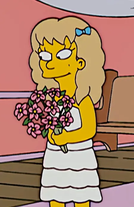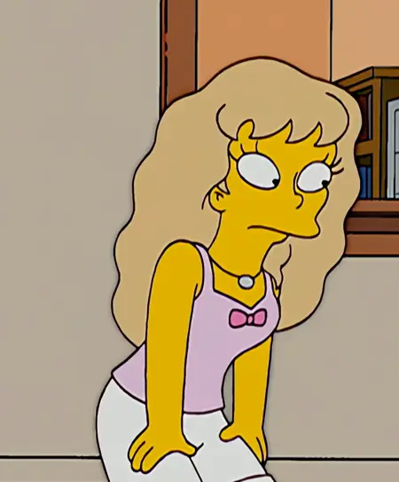 1girl, solo, Hazel Blonde hair, black dot eyes, yellow skin,