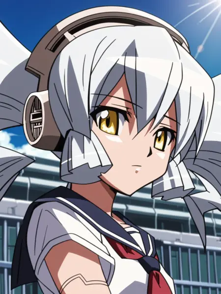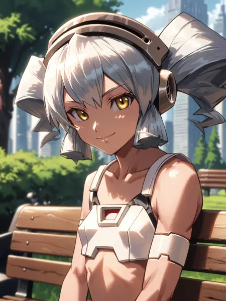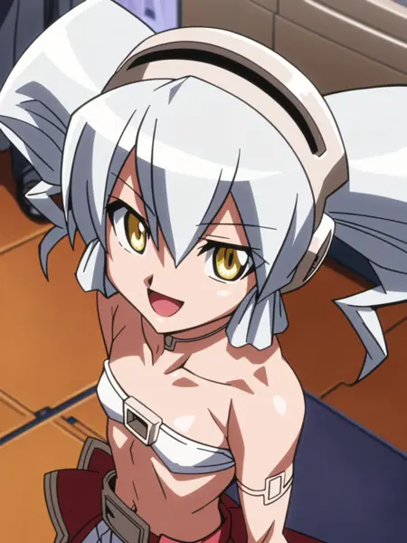 armor, blue shirt, blue skirt, chest belt, center opening, midriff, red gloves, wrist cuffs, pantiesDress: