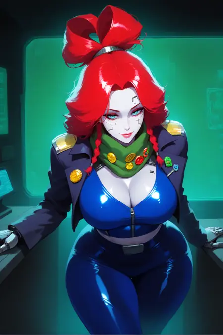 사이버걸들을 묘사한 네온에 젖은 핀업 아트.