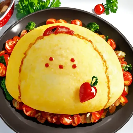 lora:omuart\_V1:1omurice,plate,parsley,tomato,