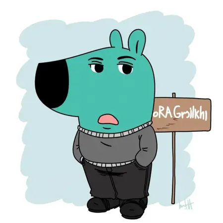 mikus-concept, hands hidden in pockets, big black nose, expressive eyes, standing