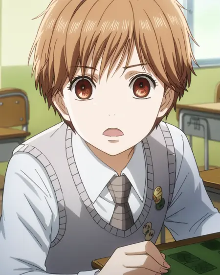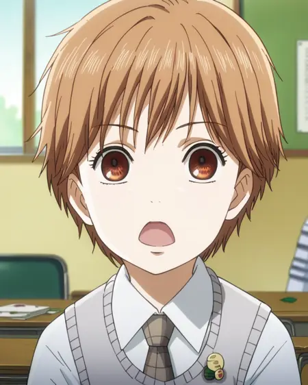 - 1girl, solo, chihayayoung, 棕色头发, 短发, 棕色眼睛,