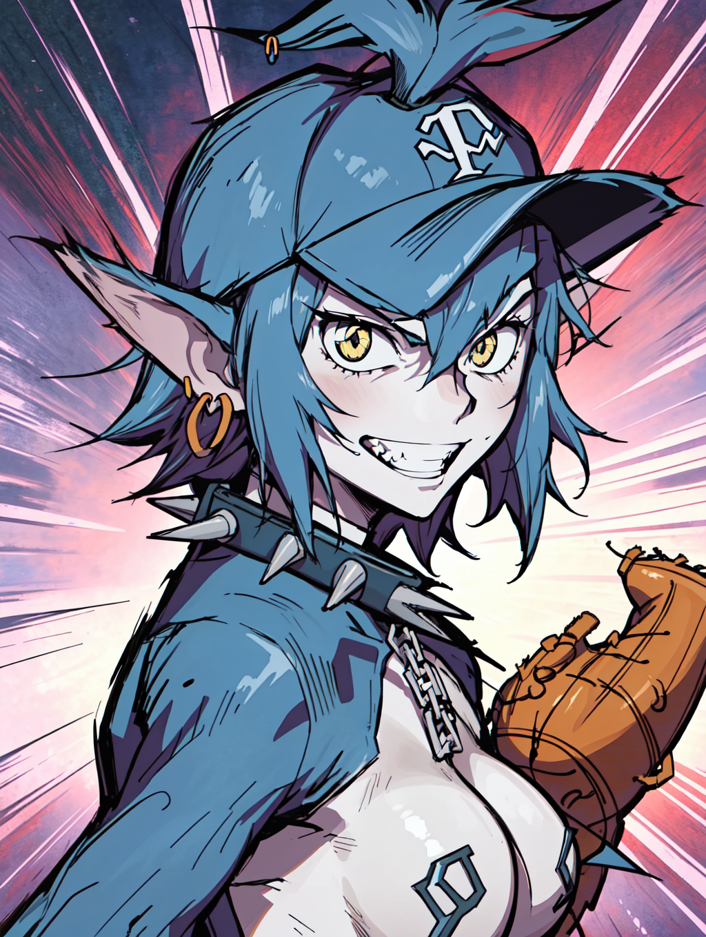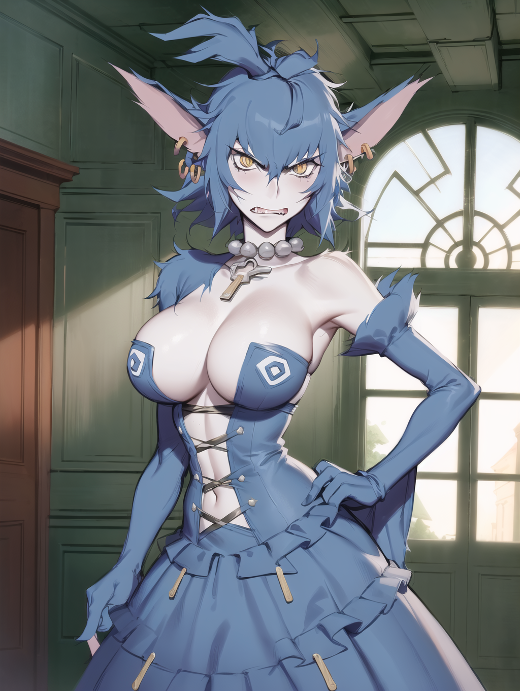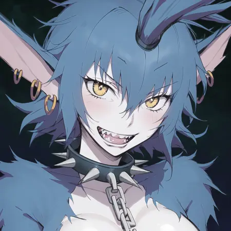 “leather pants, spiked collar, chain” 태그를 추가하면 캐릭터의 “공식적인” 외모에 더 가까워집니다(정확한 표현을 위해 반드시 “pubic hair peek” 태그도 추가하세요) ;)