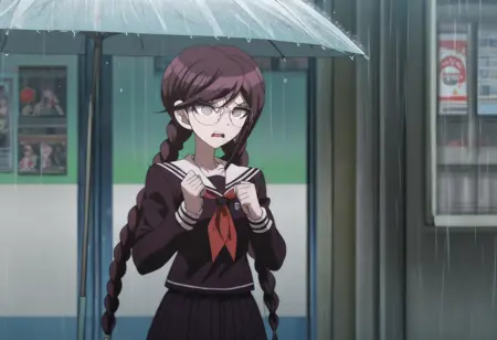 다랑로나파 애니메이션: 프롬프트에 "This is an anime screencap from Danganronpa The Animation"을 사용하여 애니메이션 시리즈 다랑로나파의 예술 스타일을 모방하세요.