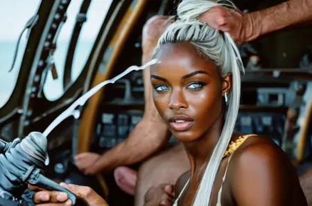 lora:ghtggFT15:1 {ghtggft, }{realistic, }{solo, }{1girl, }{portrait, }{facial, |}{cum, |}{cum on hair, ||}{looking at viewer, ||}{dark skin, |||||}{close-up, ||}{wet, |||}{dark-skinned female, |||||||}{1boy, |||}{bukkake, |||}{closed mouth, |||}{wet hair, |||}{suggestive fluid, |||}{male focus, |||}{parted lips, |||}{upper body, |||}{open mouth, |||}{curly hair, |||}{traditional media, |||}{cum on body, |||}
