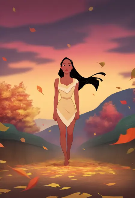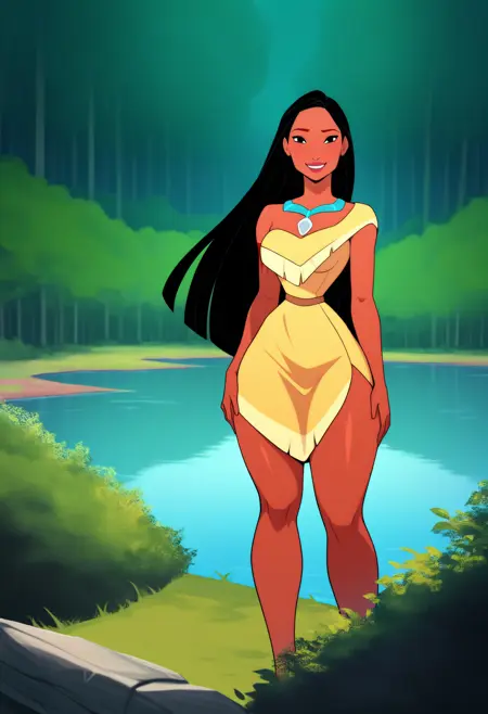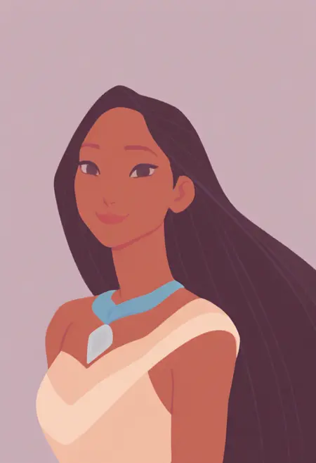 Basic prompts : 1girl, pocahontas, black hair, long hair, black eyes, dark skin