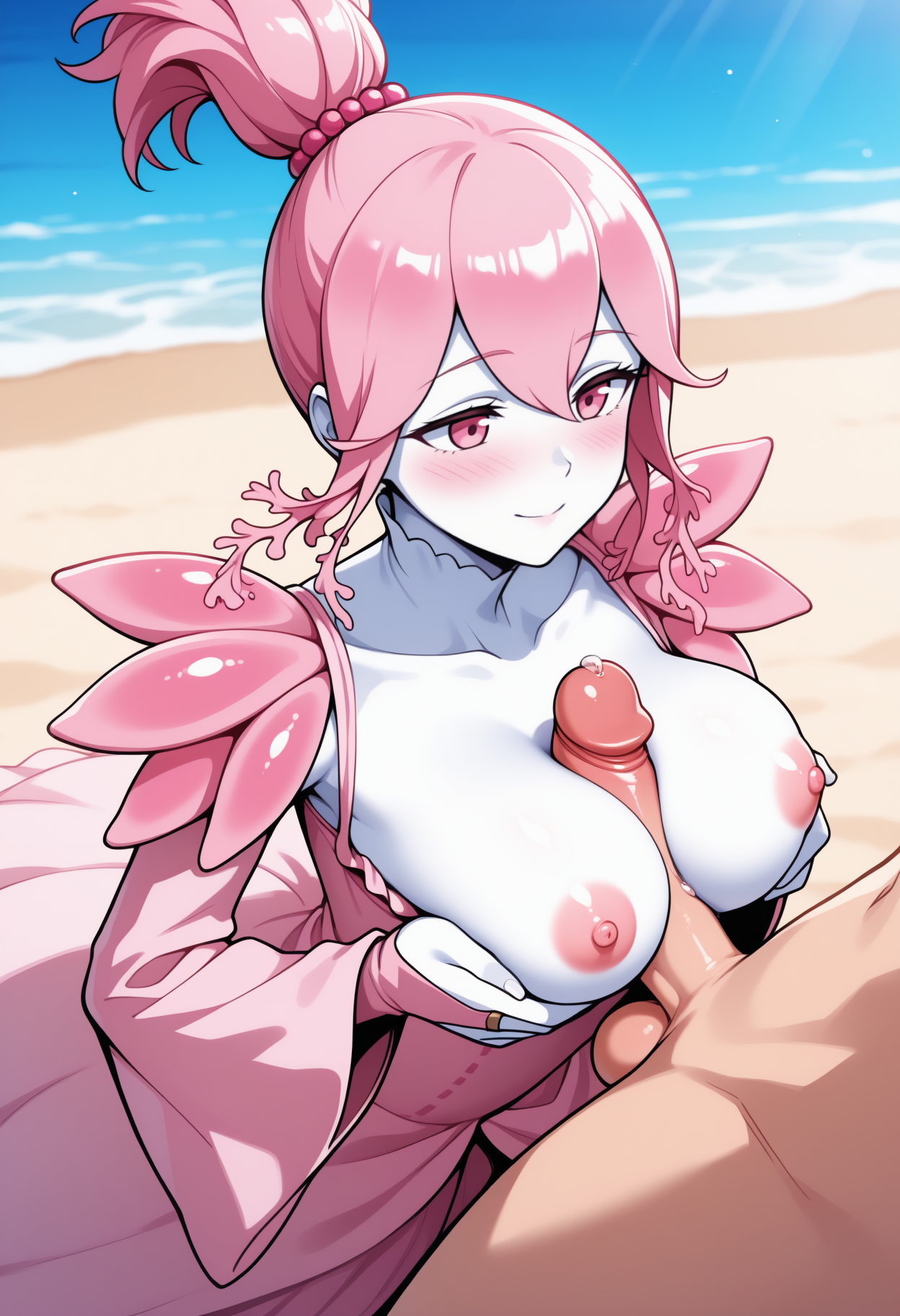 トリガー+外見: vntrcs, モンスター娘, 白い肌, 長い髪, ピンクの髪, ポニーテール, ピンクの目