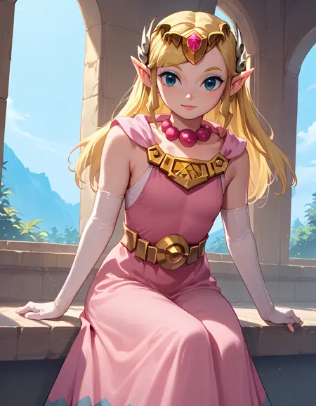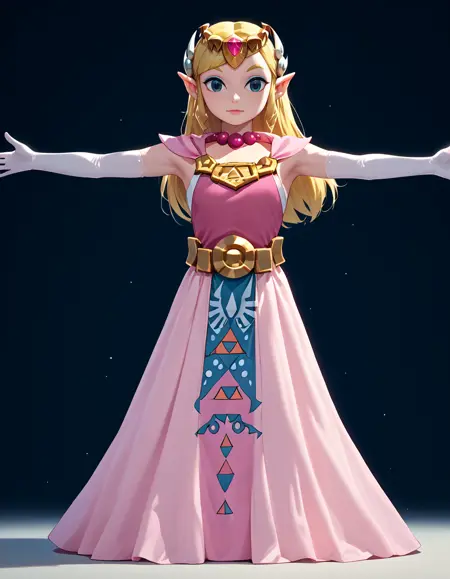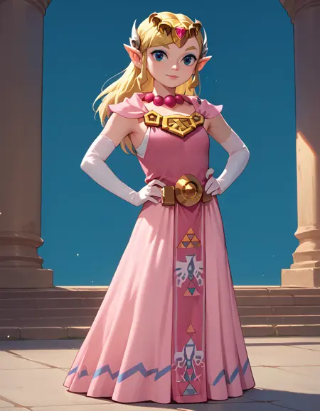 Toon Zelda, blonde hair, elbow gloves, long pink dress