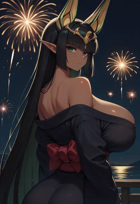 기본 복장: 이집트 복장, 노출되는 옷, 안크, 우세크 목걸이, 페이스티, 유두 노출, 검은 장갑, 팔꿈치 장갑, 신부용 장갑, 검은 허벅지 양말, 한쪽 허벅지 양말