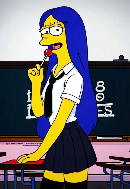 marge bouvier, yellow skin, blue hair, long hair, black eyes, the simpsons