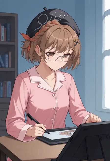 触发词 + 外貌: maddelena, 短发, 棕发, 发辫, 发夹, 棕色眼睛