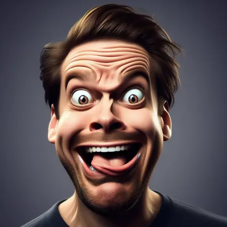거대한 미소 또는 찡그린 표정: 미소나 찡그린 표정을 극단적으로夸张해, 입을 최대한 크게 혹은 작게 만드세요.