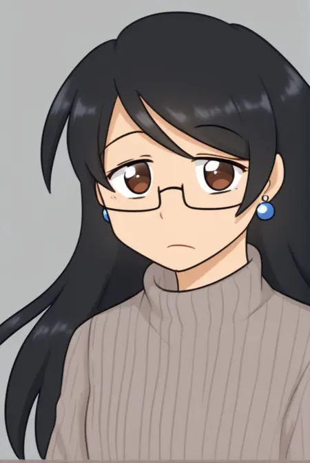 yoontoons, 1girl, glasses, black hair, brown eyes, long hair, earrings