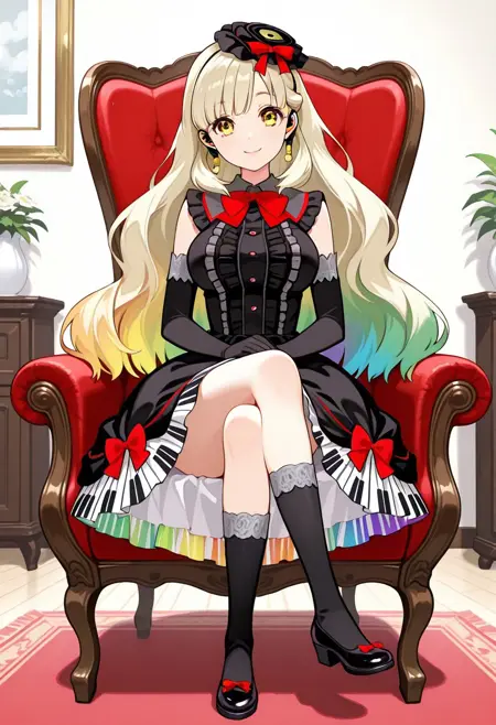 面部 - 黄色眼睛,非常长的头发,金色头发,渐变发色,多色发色,浅金色渐变为彩虹发色