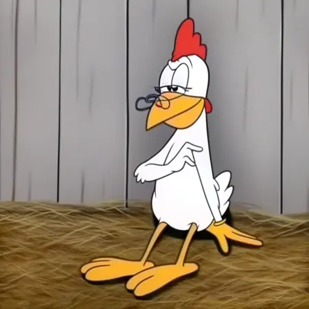 Ms_Prissy_Hen,1girl,洛基兔风格,老式卡通,鸡,母鸡,娇小,半人化,浅蓝色眼睛,浅蓝色小帽,白色羽毛,羽毛,喙,鸡腿,