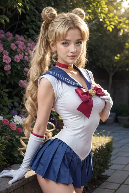 포지티브 프롬프트: LORA, realistic, masterpiece, detailed, 8k, beautiful photography of tsukino usagi, sailor moon, long hair, jewelry, sailor senshi uniform, blue sailor collar, blonde hair, red choker, twintails, red bow, blue skirt, blue eyes, hair bun, white gloves, elbow gloves, parted bangs, circlet, bun ornament, slim body, hourglass body shape, big thighs, long eyelashes, upper body shot...