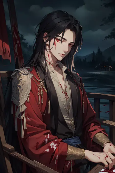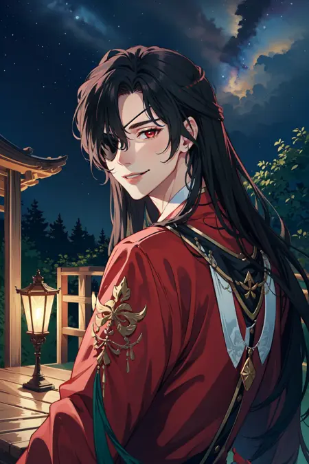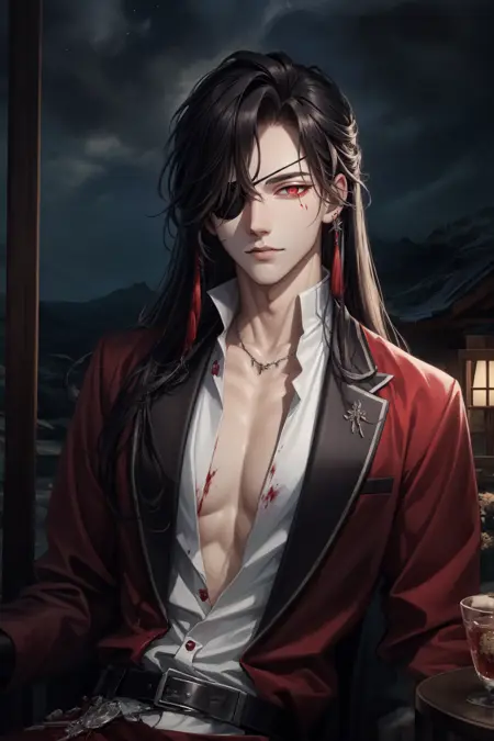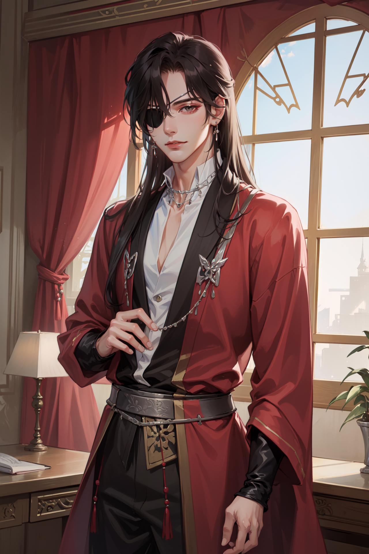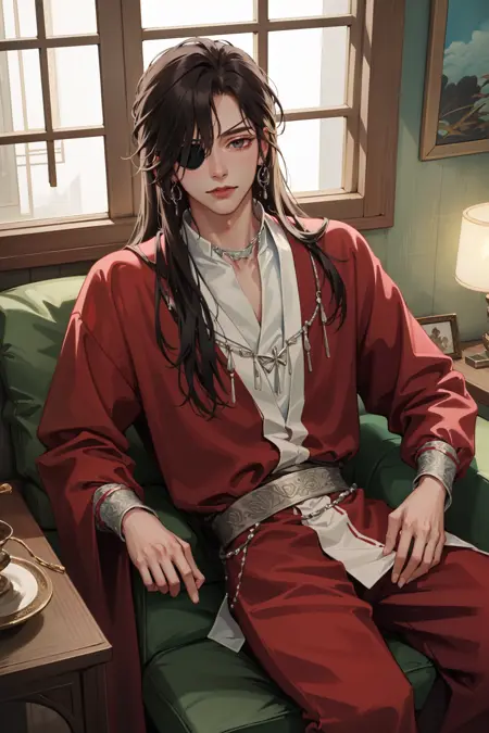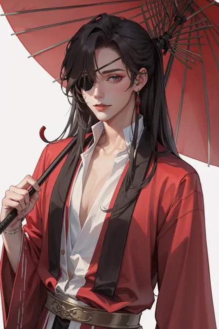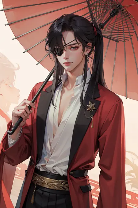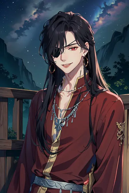 タグ:華城、1人の男の子、アイパッチ、男性焦点、中国風衣装、ジュエリー、長い髪