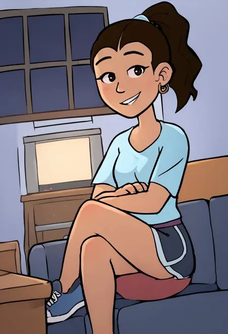SBAllie, 1girl, ponytail, brown hair, dark-skinned female