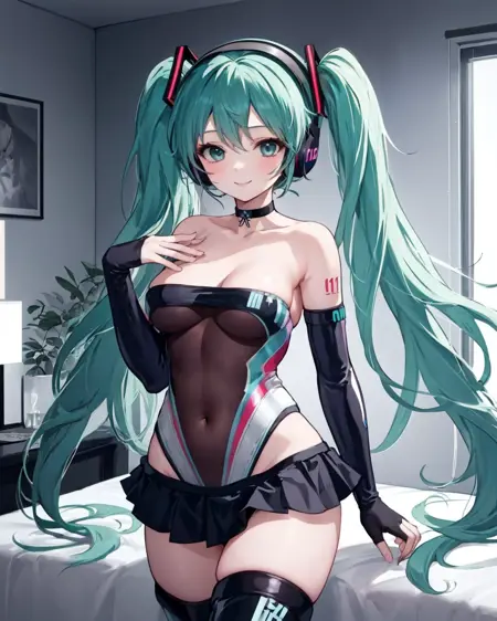 全套服饰:race queen, highleg leotard, micro skirt, thigh boots, black choker
