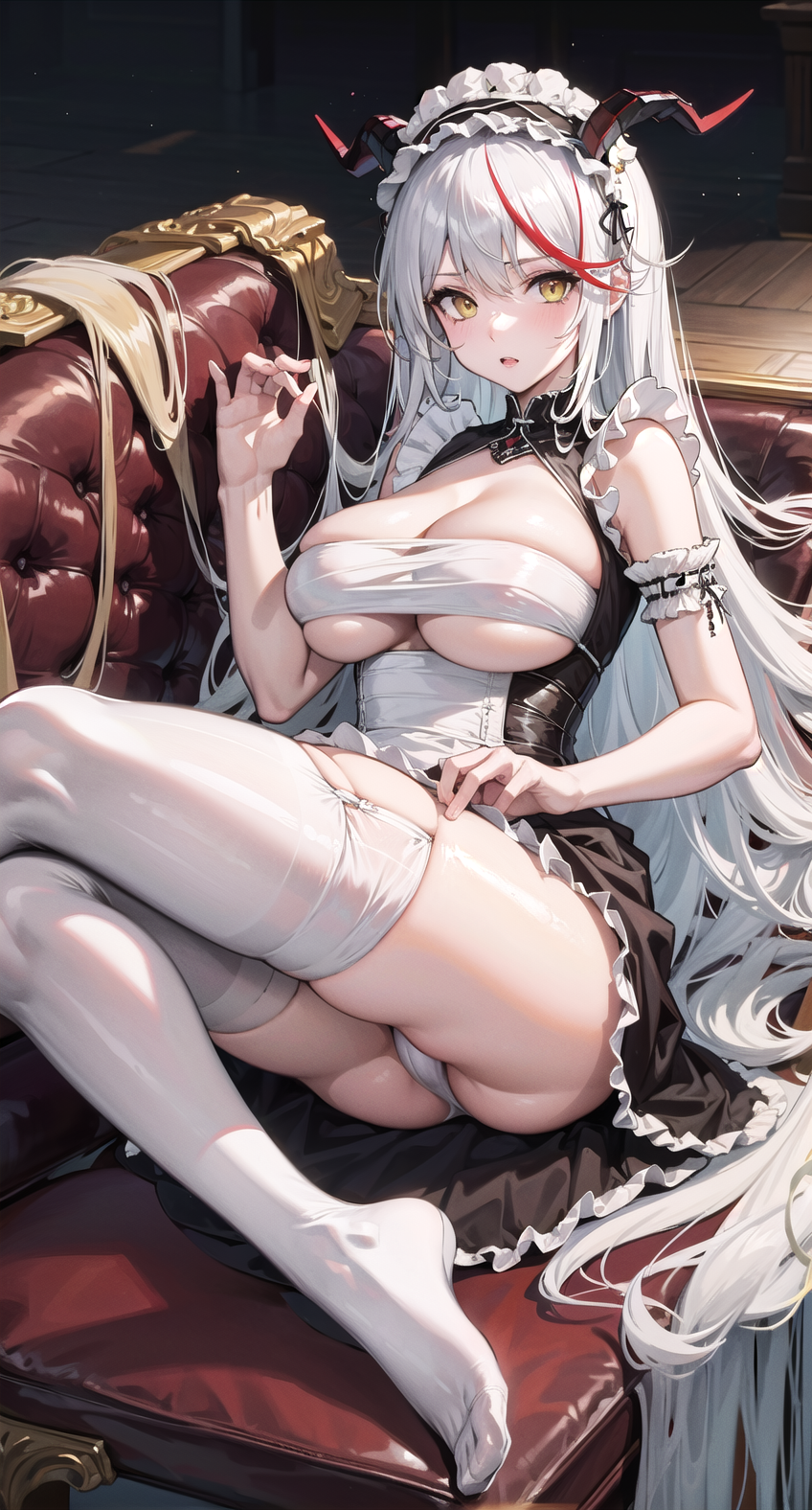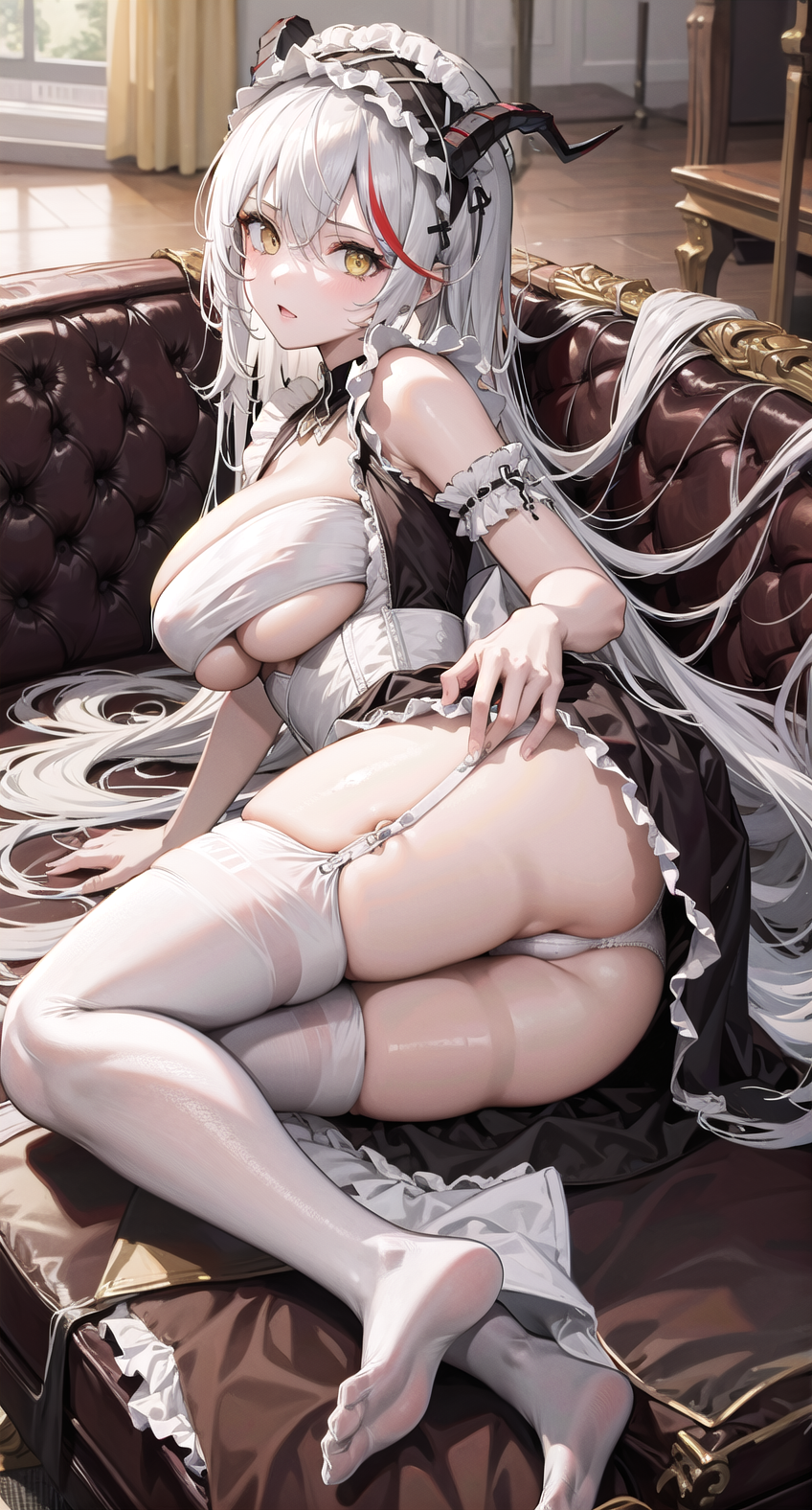 PS:キャラクターLoRAとして使用できます。推奨プロンプト: dragonmaid hairstyle, outfit-dragonmaid, 1girl, solo, ass, long hair, breasts, white hair, large breasts, yellow eyes, looking at viewer, multicolored hair, streaked hair, panties, red hair, couch, no shoes, thighs