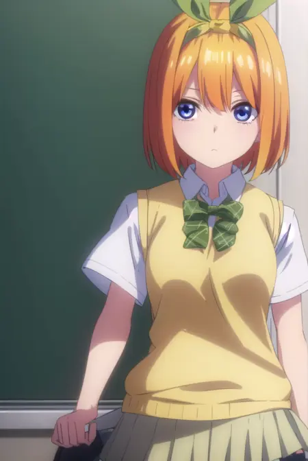 校服:裙子,衬衫,蝴蝶结,发带,校服,白衬衫,短袖,百褶裙,鞋子,袜子,有领衬衫,超短裙,领结,黑色鞋履,过膝袜,绿色裙子,黑色袜子,乐福鞋,绿色蝴蝶结,针织背心,绿色发带,