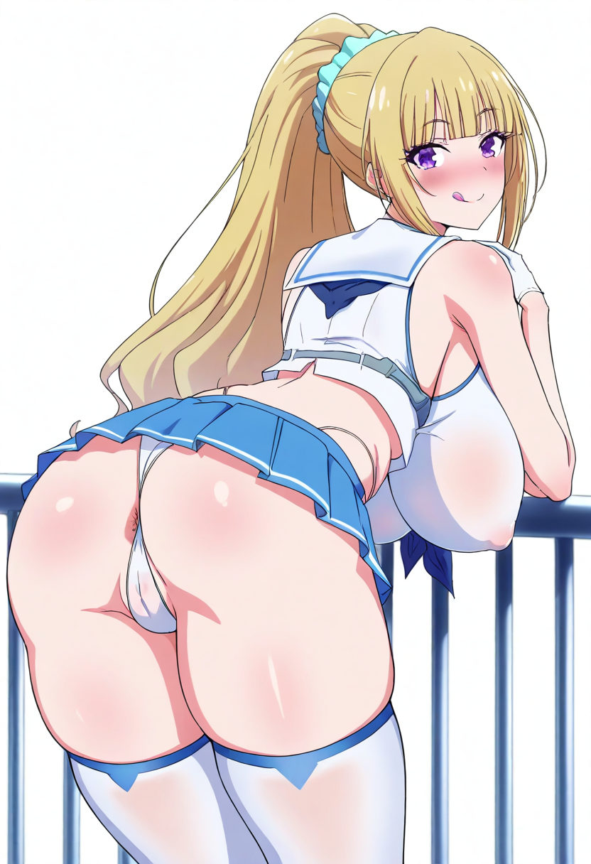 하얀 허벅지 양말, 파란 넥커치프,