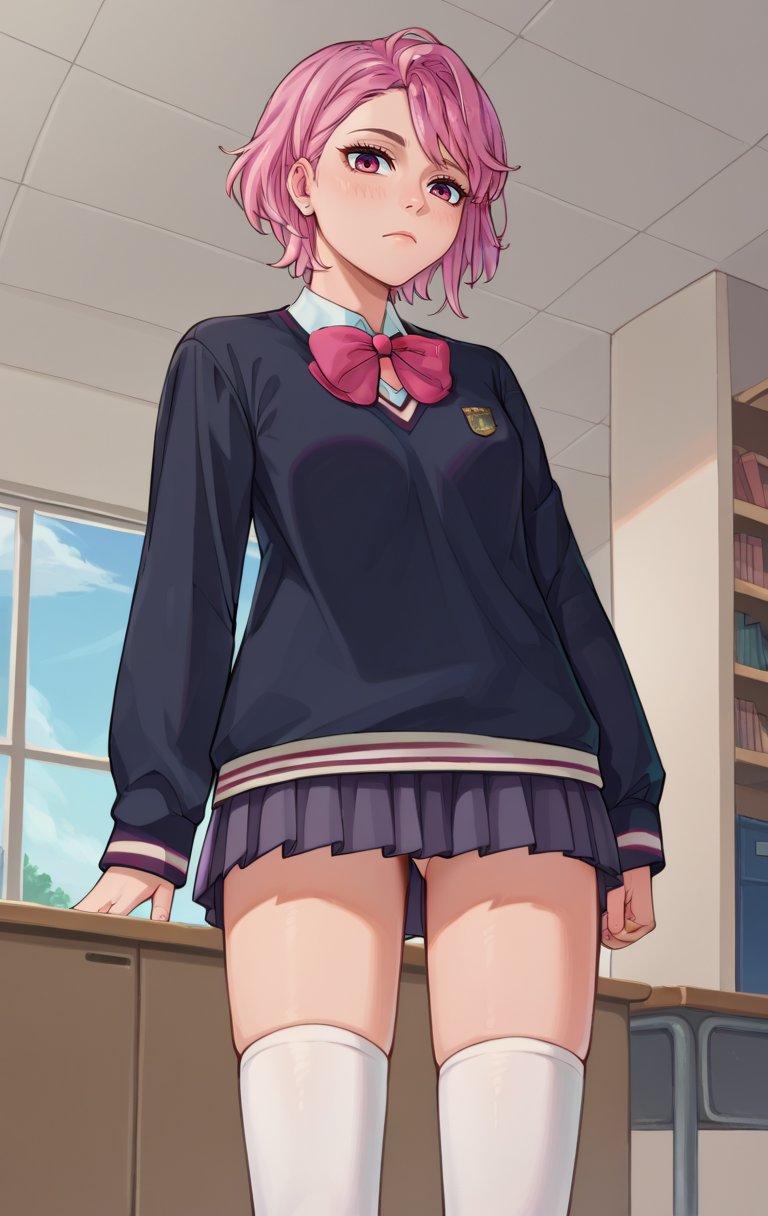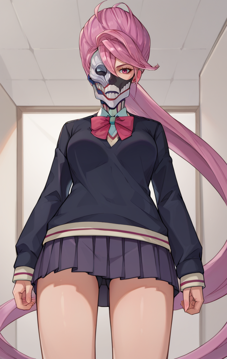 | 训练词汇 | AiraSDXL,1girl,long hair,dark pink eyes,skirt,very long hair,school uniform,black sweater,pink hair,pleated skirt,necktie,skirt,mask,mouth mask,absurdly long hair已复制! AiraSDXL,1girl,dark pink eyes,short hair,skirt,bow,white socks,bottom,school uniform,pink hair,pleated skirt,black sweater已复制! |