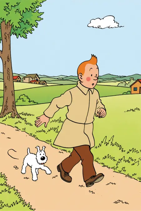 これはスタイルLoRAであり、キャラクターをほとんど認識していません(Tintinと彼の犬くらいはFluxが少し知っている可能性があります)。