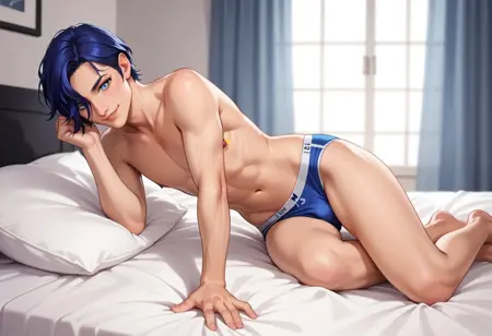 짧은 머리, 한쪽 눈을 덮은 머리, 앞머리, 파란 머리, 파란 눈,