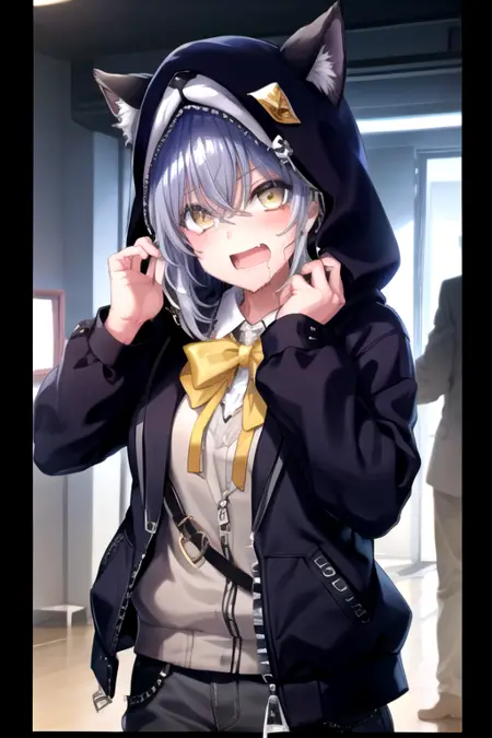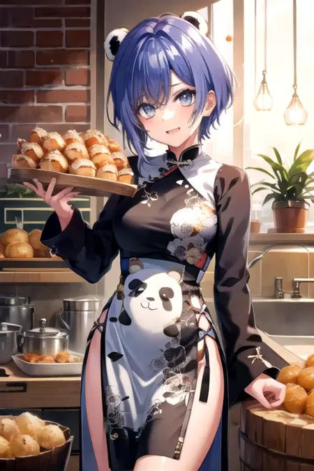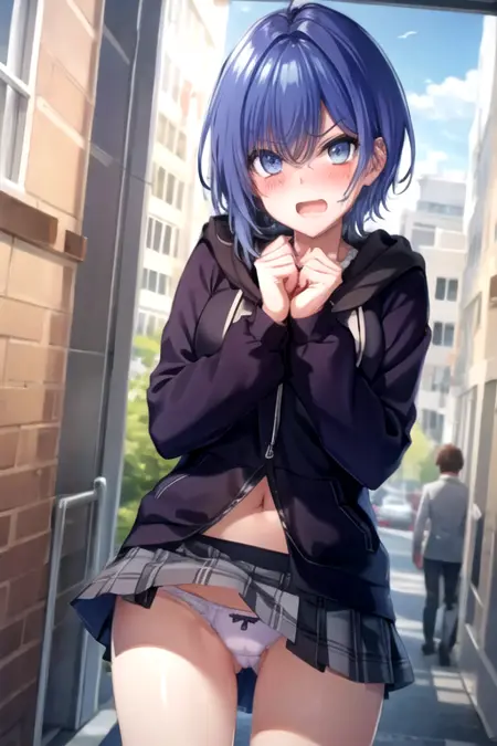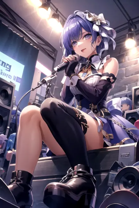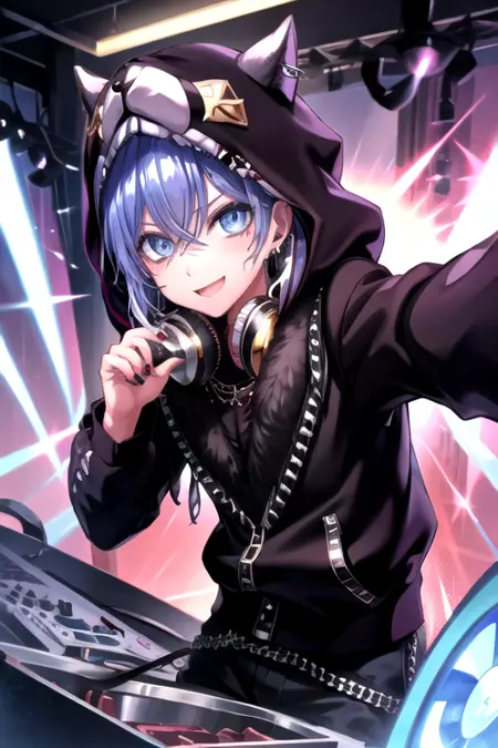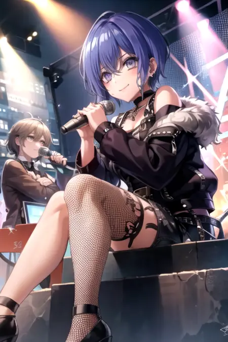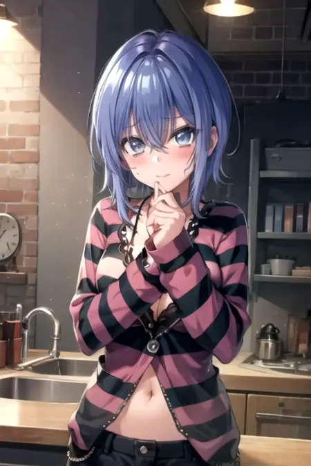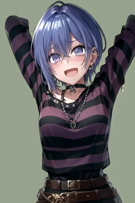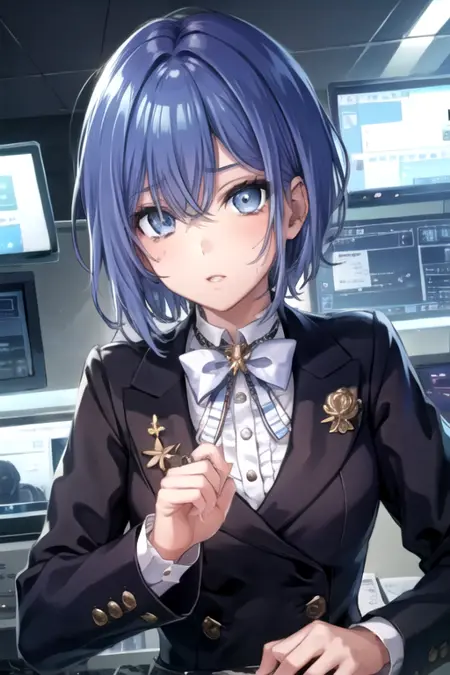 SOPHIA, 1girl, solo, short hair, blue hair, blue eyes, short hair