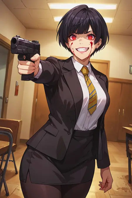 Swap brown/black eyes for "red eyes, glowing eyes" to get her infected appearance