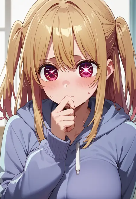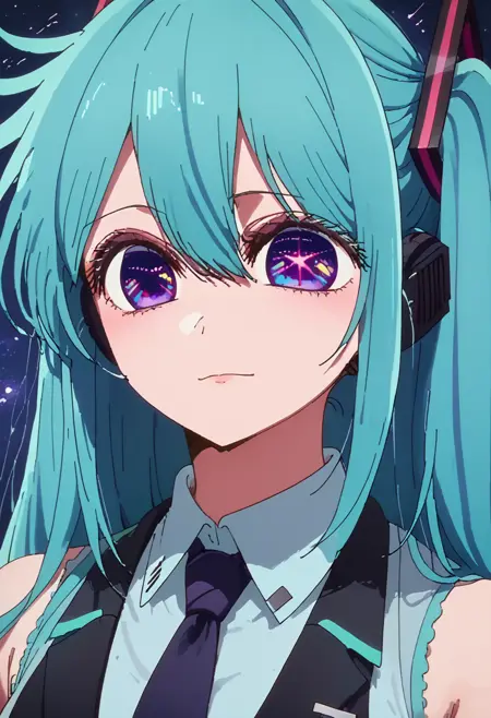 将眼睛风格化为星形瞳孔。在添加隐藏触发词时,增加更多粒子和眼睛中的反光效果。