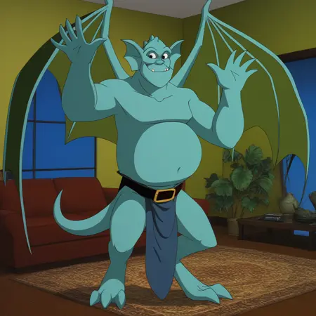 想在“石像鬼”系列中为角色Broadway制作一个小马版本,之前创作Goliath时非常愉快。我制作了一些图片,尽量贴近卡通风格,同时也尝试了其他多种风格,包括一些 bara 类型。和往常一样,请对任何图像生成持保留态度。关键词:broadway,gargoyle,海蓝皮肤,丁字裤,腰带,大,肚子,高度细节,展开的翅膀,尾巴,大身体