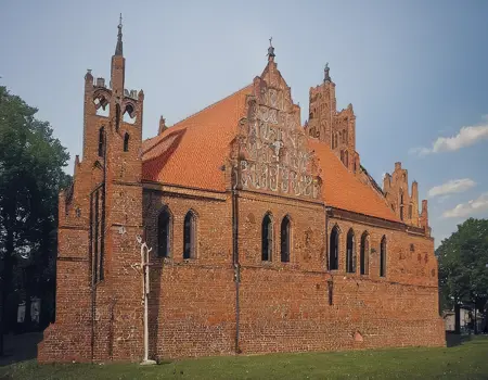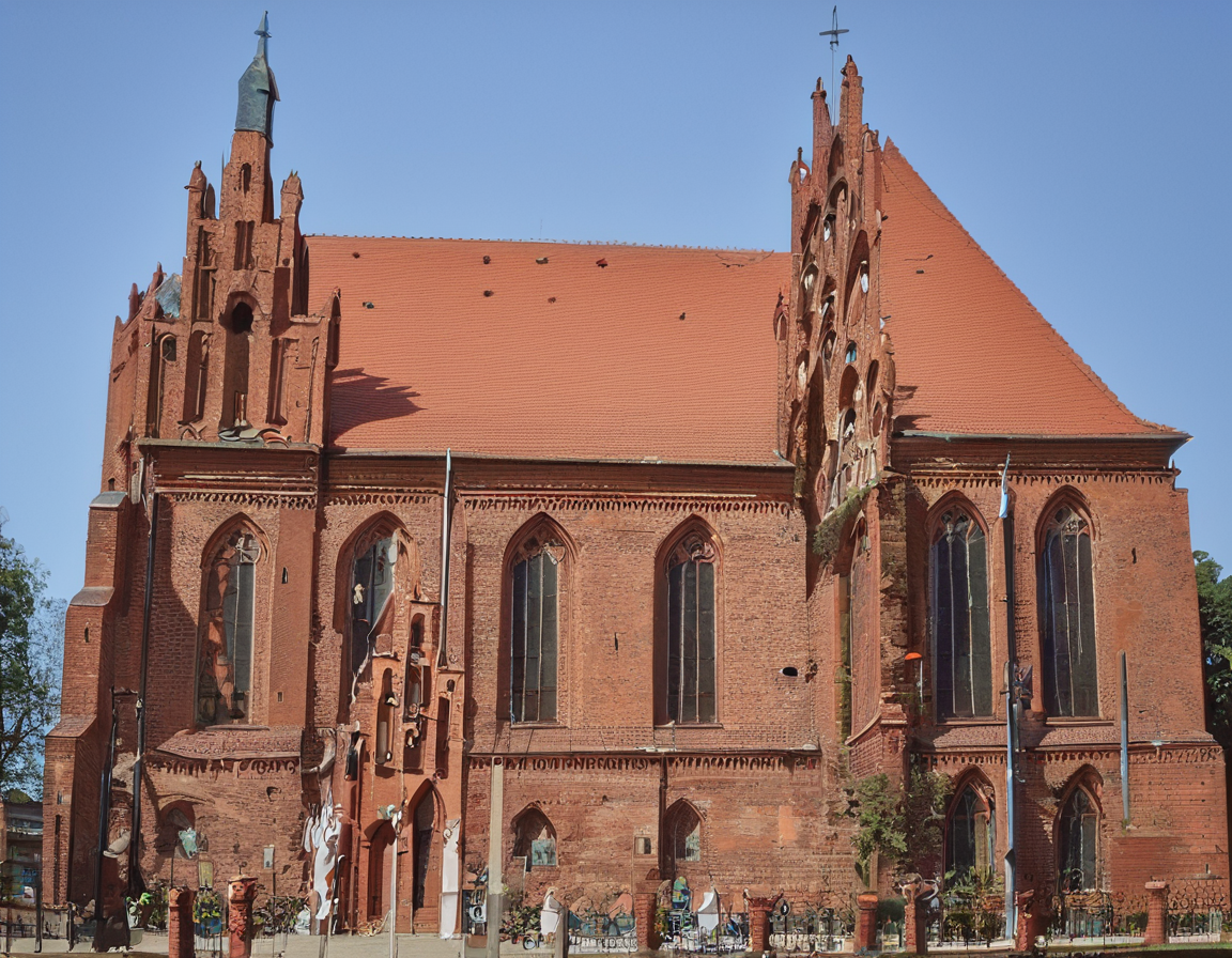 ワイドアングルショット、ゴシック建築、テュートン建築、ポーランド大聖堂、レンガ建築、lora:Teutonic\_Architecture:1
