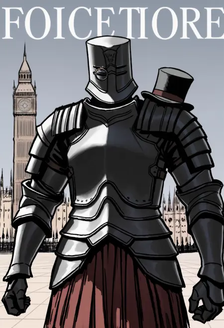 외관 태그: 헬멧, 검은 헬멧, 갑옷, 검은 갑옷, 가슴판, 검은 가슴판, 어깨보호대, 검은 어肩膀보호대, 흉갑, 검은 흉갑, 장갑, 검은 장갑, 갑옷 아래 투닉, 정강이보호대, 검은 정강이보호대, 부츠, 검은 부츠