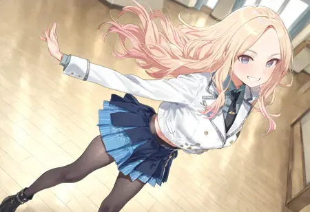 | 训练词汇 | juo sena\(idolmaster\), 1girl, solo, long_hair, smile, skirt, blonde_hair, shirt, long_sleeves, standing, jacket, pantyhose, pleated_skirt, necktie, collared_shirt, indoors, black_footwear, blue_skirt, black_pantyhose, white_jacket, black_necktie已复制! juo sena\(idolmaster\), 1girl, solo, long_hair, breasts, blue_eyes, blonde_hair, medium_breasts, multicolored_hair, midriff, pants, streaked_hair, black_pants,yoga pants, crop top, black crop top已复制! |