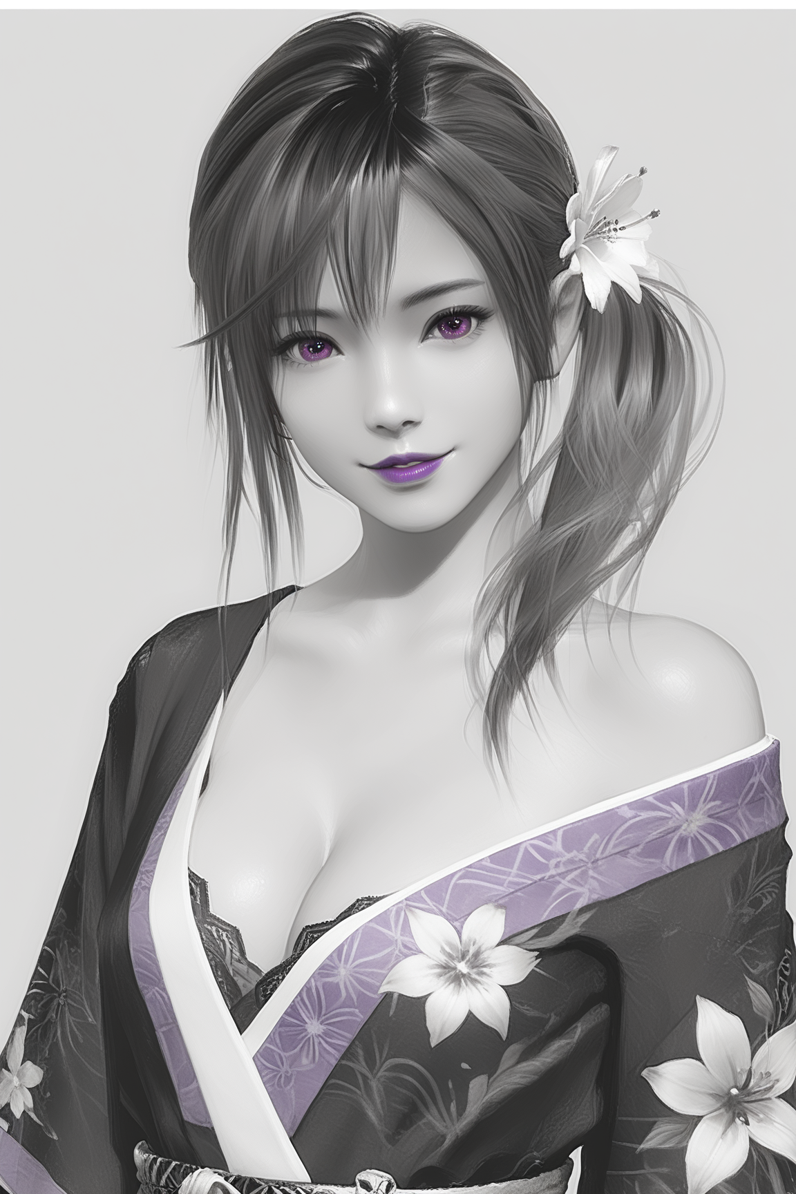 hairstyle 1: side ponytail, braid, asymmetrical bangs, hair between eyes, single sidelock,braid,ponytail over shoulder (optional)