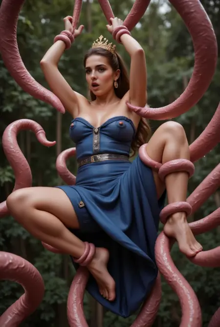 特に何もありません。ただ「触手に縛られた女性」と入力し、髪の色や人種、背景などの追加詳細を加えてください。