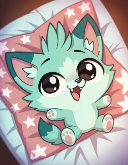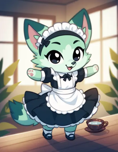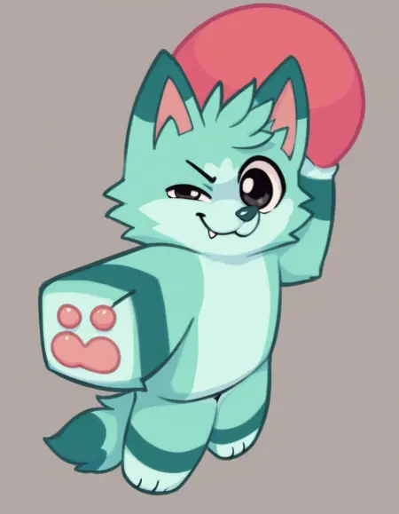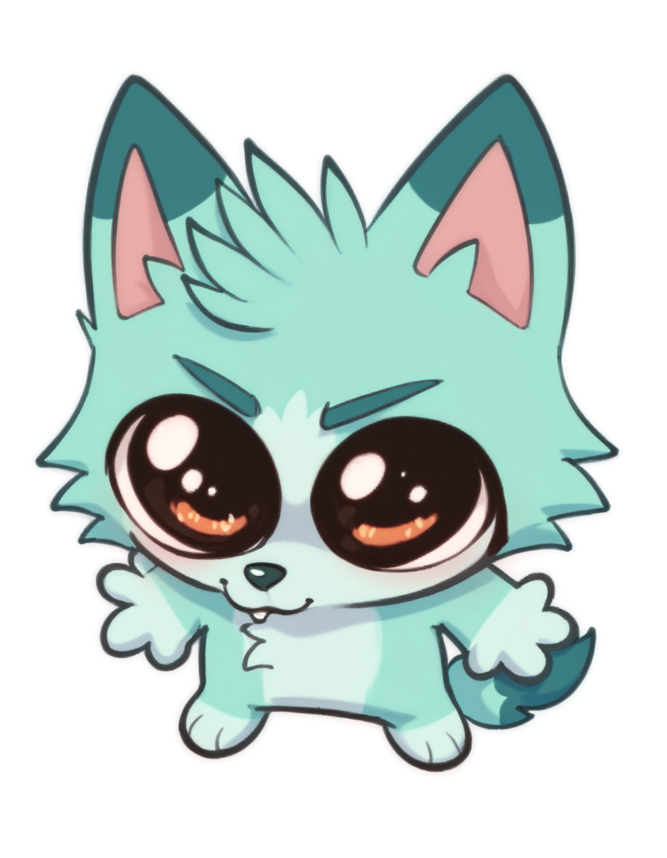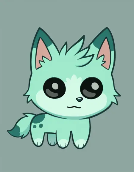 Promt: M1nt, mint-green fur, darker teal accents on ears, black eyes.