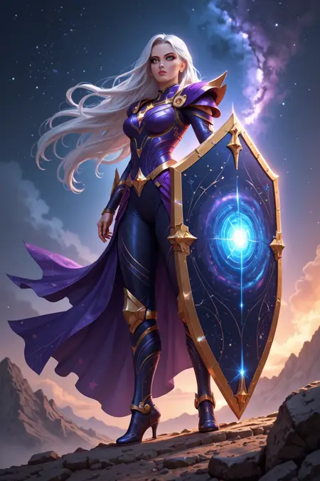 Pony 예시 프롬프트: "score_9, score_8_up, score_7_up, upscale 2x, (세계관: 월드 오브 워크래프트에서 나온 강력하고 우아한 나이트 엘프 전사의 영화 같은 전신 묘사. 복잡하게 디자인된 보라색 방패를 휘두르고 있다. 방패는 마법적인 에너지로 반짝이며, 은색 세공으로 된 달과 흐르는 덩굴 무늬가 장식되어 있으며, 나이트 엘프의 신비로운 유산을 반영한다. 방패 가장자리는 날카롭게 연마된 은으로 강화되었고, 중앙 문양은 미묘하게 빛나며, 엘룬의 상징이 신비로운 부드러운 보라빛으로 둘러싸여 있다. 나이트 엘프 자신의 피부는 매끄럽고 깊은 보라색이며, 주변 마법의 빛 아래 희미하게 빛난다. 그녀의 얼굴은 강렬하면서도 우아하며, 어깨를 넘어 흐르는 긴 은색 머리카락으로 둘러싸여 있다. 빛나는 흰색 눈은 지혜와 강렬함을 발산하며, 뾰족한 귀는 그녀의 초자연적인 아름다움을 더한다. 그녀는 전통적인 나이트 엘프 갑옷을 입고 있으며, 가죽과 반짝이는 은판으로 구성되고, 보라색과 청록색 무늬가 조화롭게 배치되어 신비로운 환경과 완벽히 어우러진다. 그녀는 숙련된 자신감으로 방패를 들고 있으며, 정밀하게 방어하고 공격할 준비를 마쳤다. 배경은 잊혀진 숲의 심장부에 위치한 고대의 마법적 폐허이다. 무너진 석조 아치는 빛나는 덩굴과 푸른 빛을 내는 버섯으로 덮여 있으며, 마법의 상징들이 희미하게 흐느끼는 바위 벽에 떠 있다. 달빛이 수목의 틈을 통해 비춰, 고요하면서도 신비로운 빛을 퍼뜨린다. 공기는 마법의 에너지 미립자로 반짝이며, 폐허에 신비로운 분위기를 선사한다. 저각도에서 촬영된 구성은 나이트 엘프의 우아함과 그녀 및 방패에서 흘러나오는 고대의 힘을 강조한다. 이 작품은 생동감 있고 디테일한 판타지 애니메이션 스타일로 표현되었으며, 고해상도 디지털 페인팅 기법으로 장면의 신비롭고 마법적인 세부 사항을 생생하게 포착했다.:1.2)"